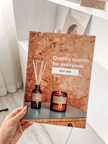 رنگهای خنثی مثل سفید، طوسی و کرم کمک میکنن تمرکز کامل روی محصول بمونه—چه شمع باشه، چه عطر، چه لوازم آرایشی یا اکسسوری.