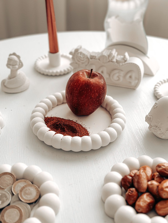 شامل: مرواریدی بزرگ یک عدد مرواریدی متوسط ٣ عدد دو عدد تخم مرغ استند آینه همراه با آینه مار جا شمعی مرواریدی ٢ عدد نماد سال