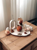 شامل : سینی لبه دفرمه بیضی استند اینه همراه با آینه گلجا همراه شیشه تخم مرغ نماد سال