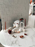 شامل : پنج عدد استند دفرمه استند نیم دایره همراه با آینه جا شمعی مرواریدی درشت دو عدد گلجای گنبد تخم مرغ 2 عدد نماد سال
