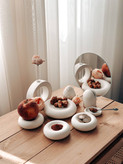 شامل : ٣ عدد مینی گرد تپلی ١ عدد گرد تپلی بزرگ ١ عدد دفرمه کوچک استند آینه گرد همراه با آیینه گلجا تخم مرغ