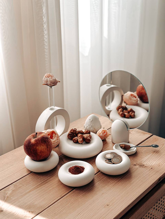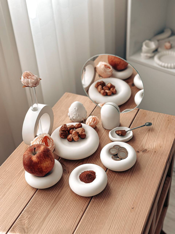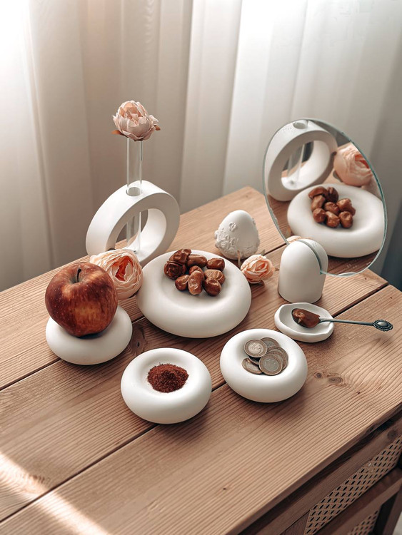 شامل: ٣ عدد مینی گرد تپلی ١ عدد گرد تپلی بزرگ ١ عدد دفرمه کوچک استند آینه گرد همراه با آیینه گلجا تخم مرغ
