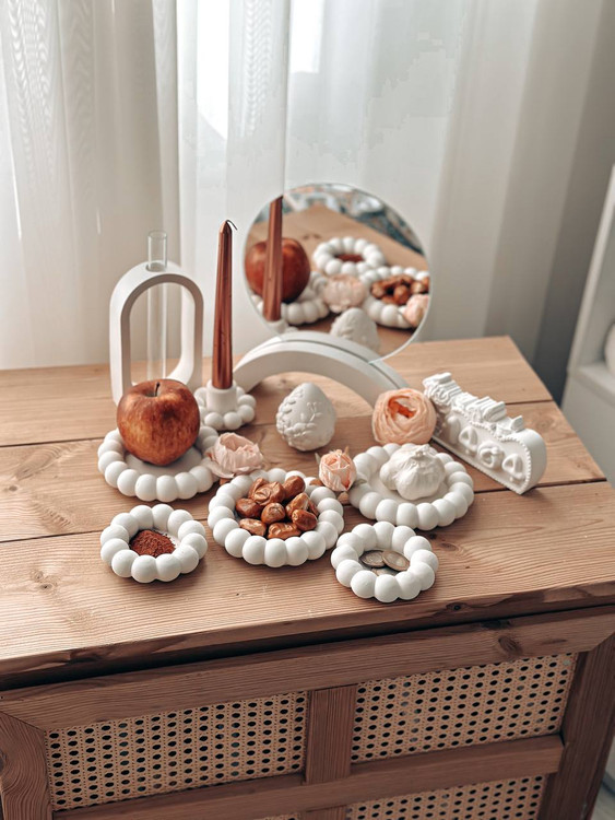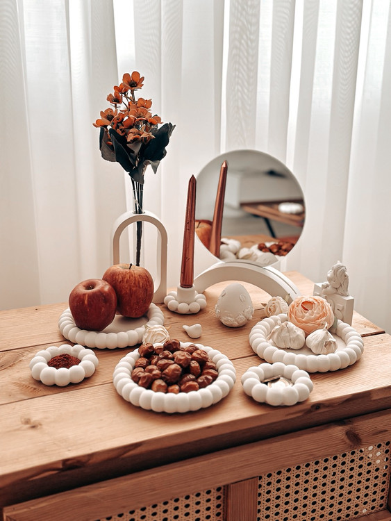 شامل: مرواریدی متوسط 3 عدد مرواریدی مینی 2 عدد استند آینه همراه با آیینه جا شمعی دسته مرواریدی تخم مرغ گلجای نماد سال