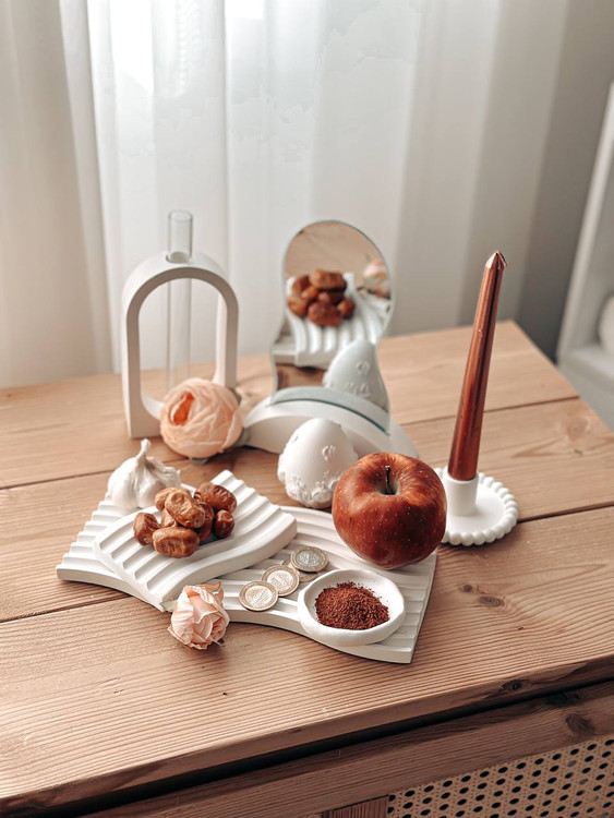 سینی موج مستطیلی استند همراه با آینه مینی موج قلب کوچک جا شمعی مرواریدی تخم مرغ دفرمه کوچک