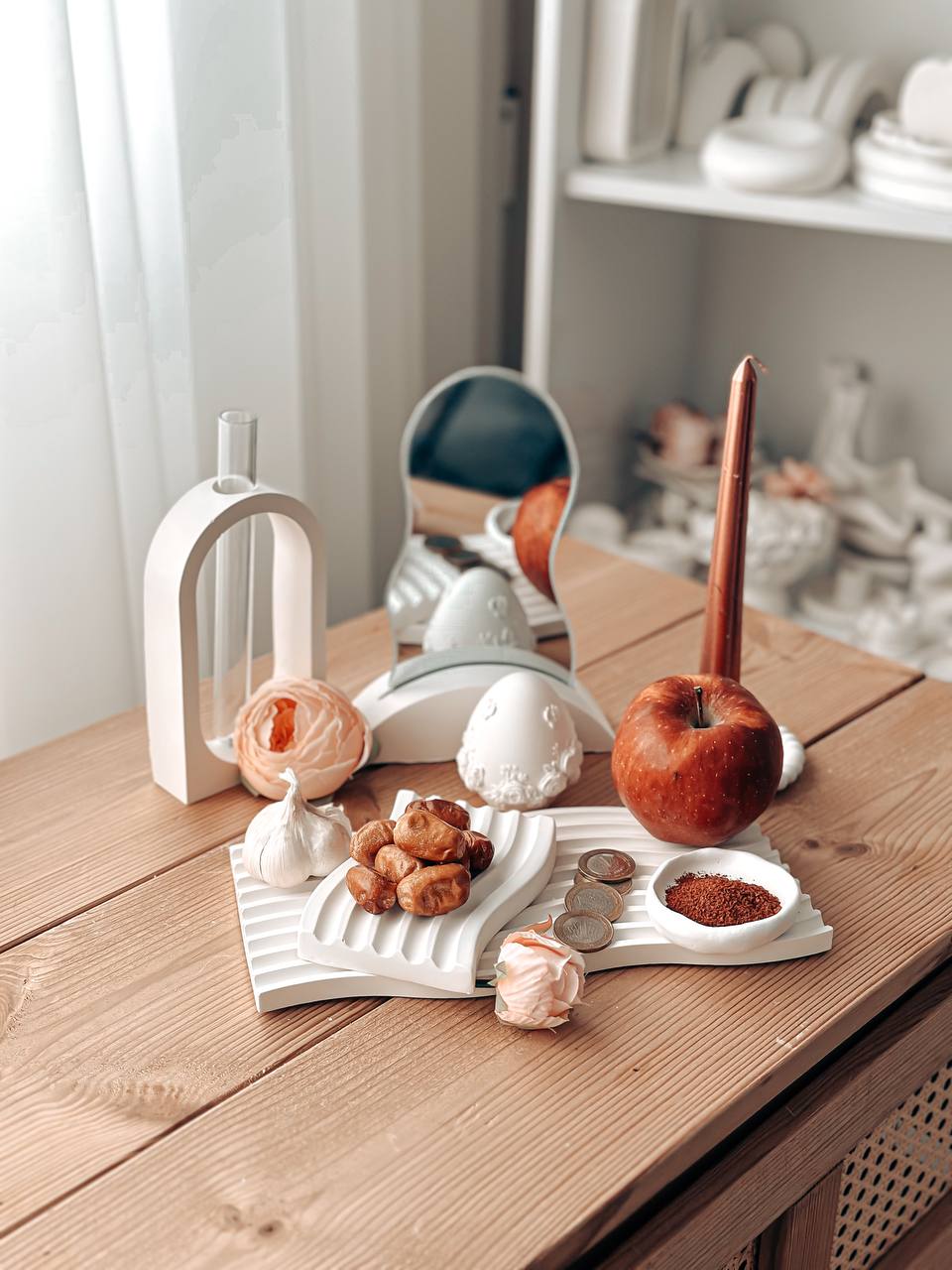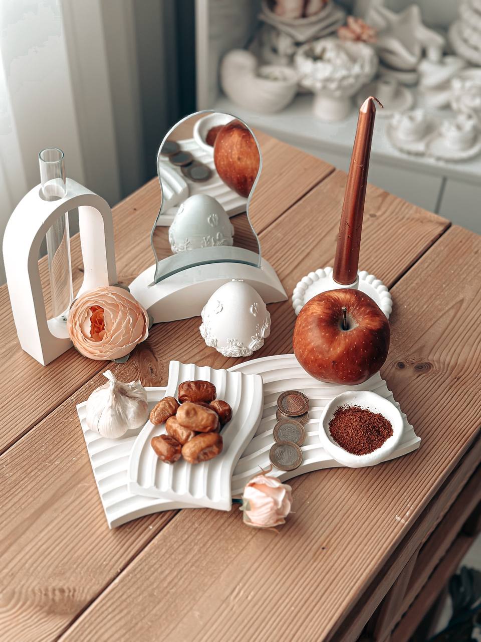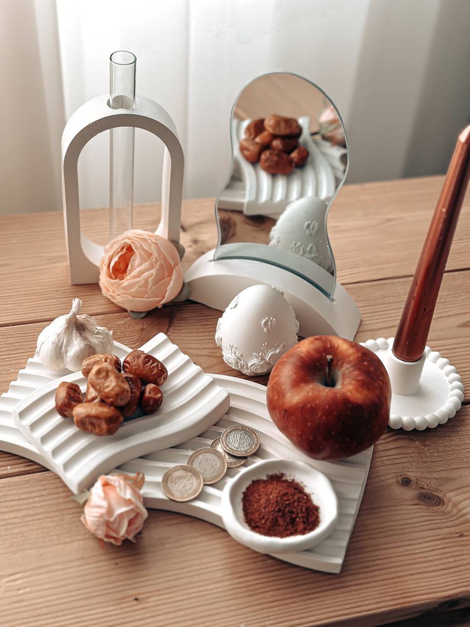 شامل: سینی موج مستطیلی استند همراه با آینه مینی موج قلب کوچک جا شمعی مرواریدی تخم مرغ دفرمه کوچک